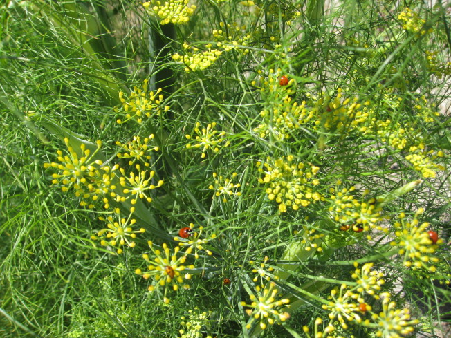 Lots of ladybugs on the fennel flowers. Maybe they eliminate the aphid population that has been a bit of a problem in the past two years.