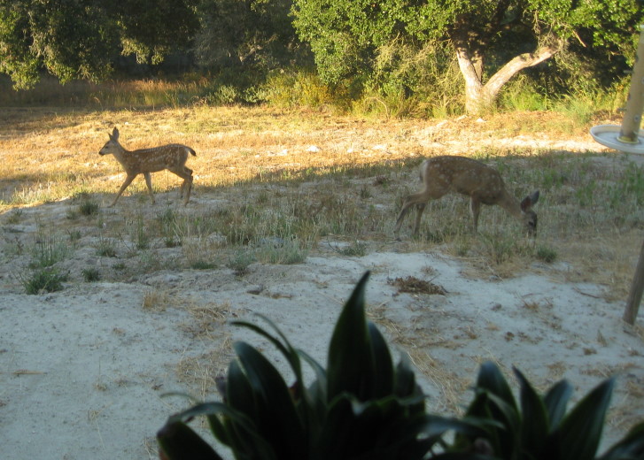 This year’s fawns showing their baby spots graze on the hill behind our home and will come up within a few feet of the house. Unlike the birds who come to the feeder out there, the deer do not seem disturbed by us moving around on the other side of the window.