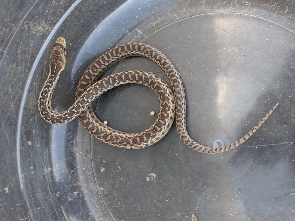 I noticed something that looked “wrong” as I went through the garage, so I took a closer look. It turned out a little snake had found its way about as far as it could go into the garage. It wasn’t happy to be grabbed and put into a plastic container. But once we had the photos, it was put out where it would be in a lot better to hunt for prey than the garage.