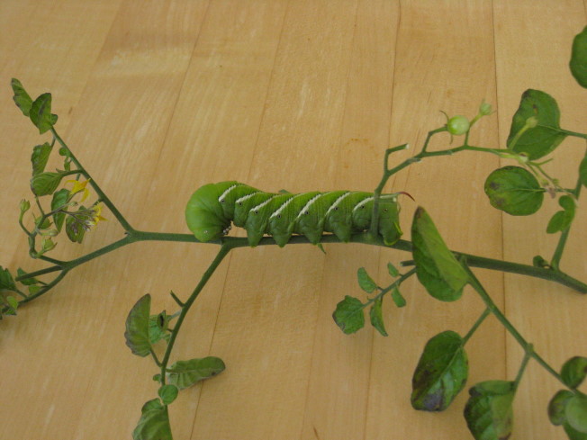 I found this critter, a tomato hornworm in the current tomato plant. Just the one.