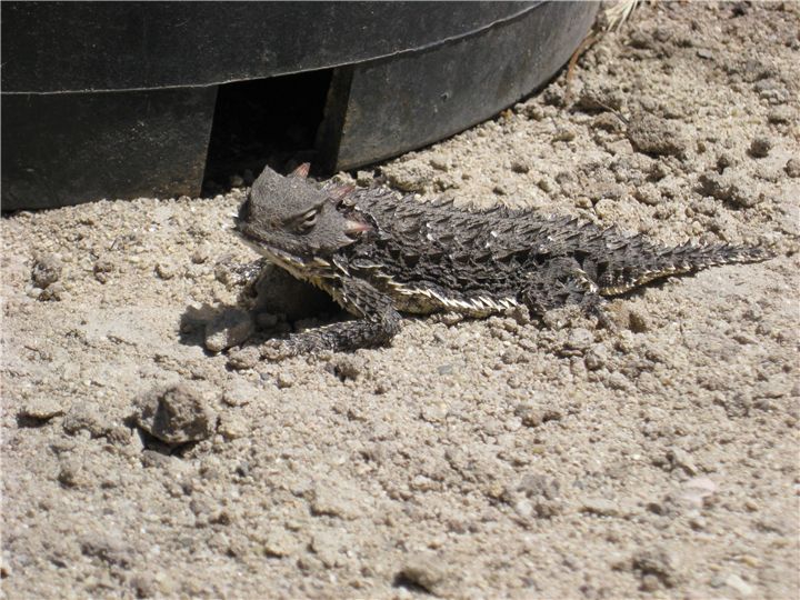 While I was working outside, I was surprised to see this little guy. When we first built our house, the ground around was very sandy and we seemed to find horned toad lizards frequently. Or maybe it was the same two or three that we kept catching to look at and releasing the next day. But after the weeds stabilized the ground, we did not see these. So possibly the work smoothing out the orchard and garden area turning things sandy again, brought the critter up to visit.