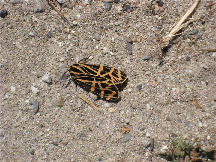 Just a moth that was flitting around. But it had a pretty pattern on its wings, so a photo was in order.