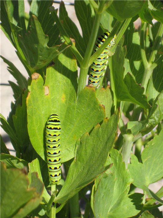 I found a couple of what I identified as swallowtail butterfly caterpillars on one of the herb plants. They are partial to members of the parsley family.  In this case, it was on lovage.  Again, I had not seen any swallowtail butterflies, so it was another surprise to see them.