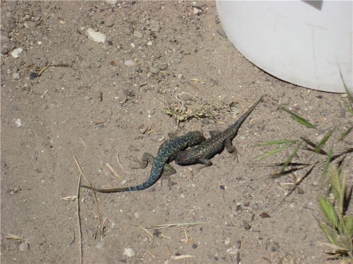 Instead of the usual lizard behavior that looks like they are doing push-ups while soaking in the solar energy, these two seemed to be battling.