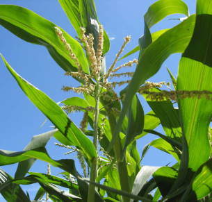Maybe in just a few more days the corn will be ready to eat. The seed catalogs said these varieties should be ready to harvest in about seven weeks. However, perhaps because it has been pretty cool here this summer, it has taken several weeks longer than that. Also, the catalog entry for one of the varieties indicated that it would be about six feet tall and that the other six and a half feet. They got the first one correct, but half the other patch is more like eight feet tall. Not that I care as long as they fill out lots of sweet delicious ears.