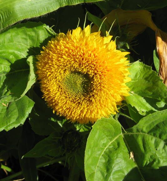 Another sunflower, only this one is different from the others. The flower looks as if some seeds of another variety slipped in with the others. Which is just fine.