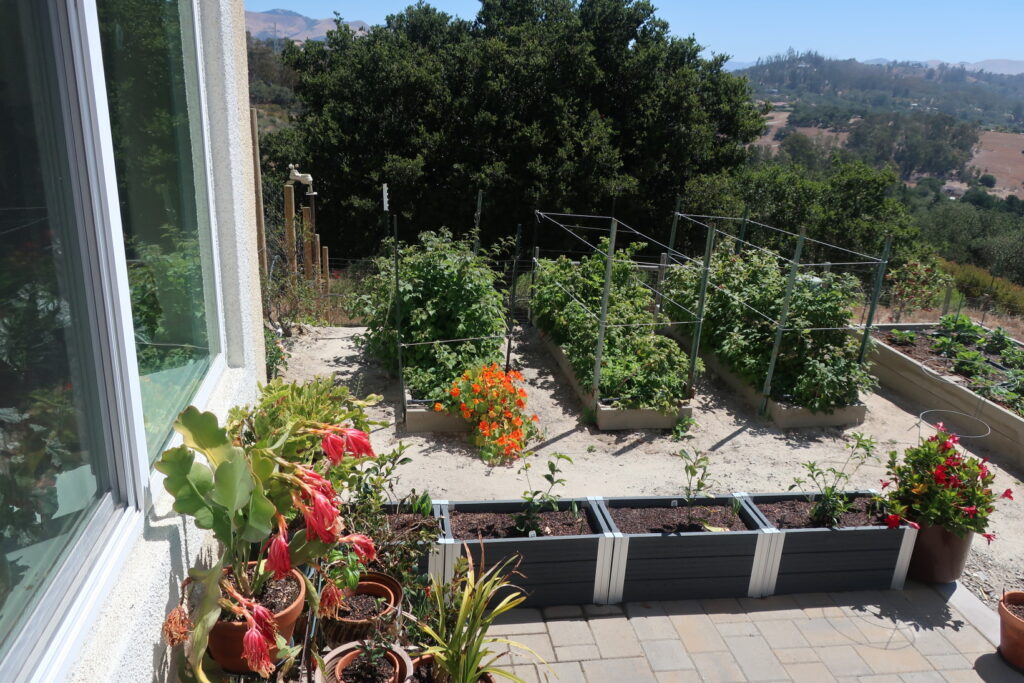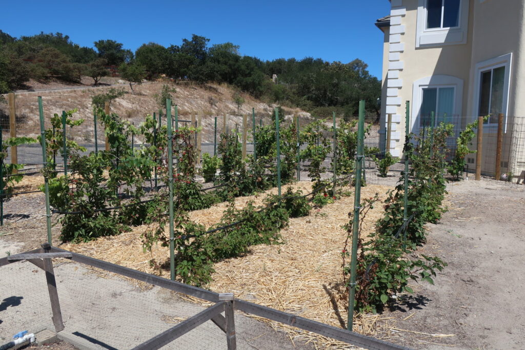 One of the grape vines decided it liked being in the ground enough to produce lots of clusters of grapes.