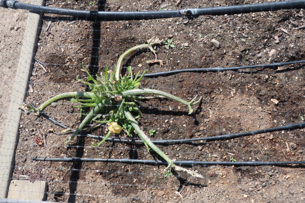 The excavation in the hill was the work of the ground squirrel. The critter who has been eating the tender sprouts that the veggies are putting out. Needless to say, this is war.