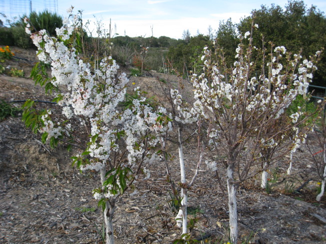 There were a few blossoms on a couple of the cherries last year. This year it is quite the opposite situation.