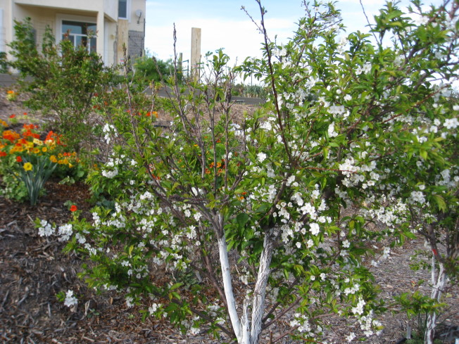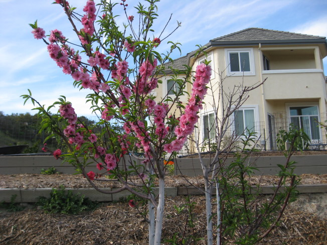 A group of four plums decided to start blooming this year as well. Like most of the others, there were only a few flowers on one of the trees last year.