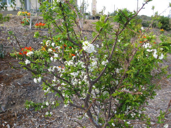 This is a four-in-one pluot. At least a couple of the varieties are in bloom.
