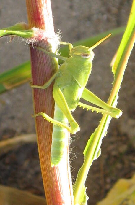 I should not have been happy to see this critter on the corn. But he just seemed too pretty to do anything but get his picture. He matched the color of the leaves perfectly.