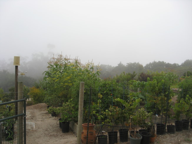 We have “May Gray” and “June Gloom”. I am not sure what you call it in July, but it was a not untypical foggy morning. Being close to the ocean, the marine influence is significant that way. A nice cool morning is a good time to work in the garden.