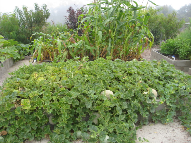 This year, the melons actually worked. Several kinds were planted and grew into a tangled mess.
