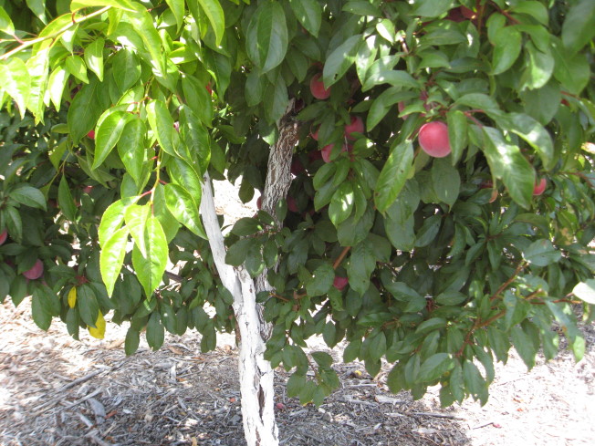 The four-in-one plum that now may be a two-in-one, is full of too many small plums. Another that hide the baby fruits until too late. This one may be a good tree to sort out next winter with serious pruning and then see if the scion exchange can provide replacements for the branches that died off.
