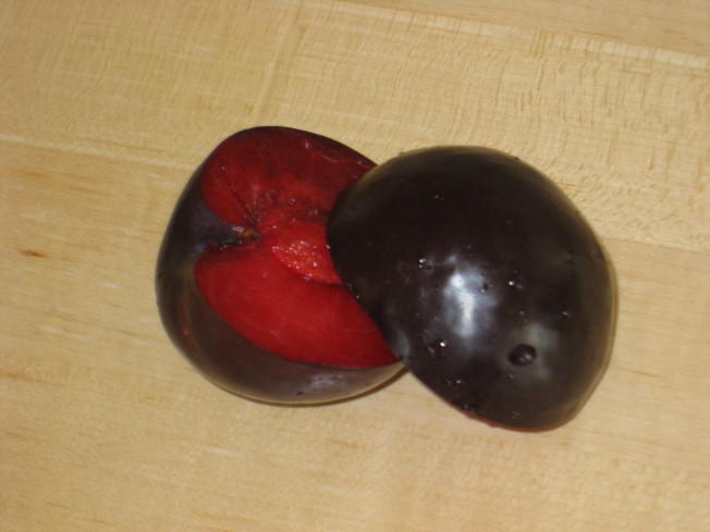 This is pluot Flavorosa. These managed to hide really well in the foliage of the tree and it wasn’t until this one dropped to the ground that I knew to look for more.